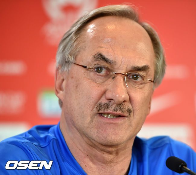 울리 슈틸리케 감독이 이끄는 한국 축구대표팀과 호주대표팀이 30일(이하 한국시간) 호주 시드니에 위치한 스타디움 오스트레일리아서 2015 AFC 아시안컵 결승전 기자회견 및 훈련을 가졌다. 한국 슈틸리케 감독이 기자회견을 갖고 있다.