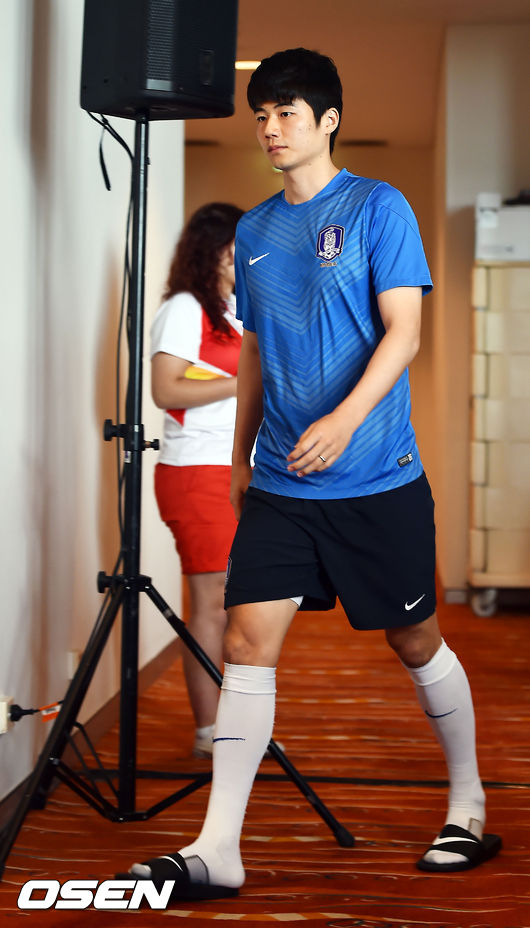 울리 슈틸리케 감독이 이끄는 한국 축구대표팀과 호주대표팀이 30일(이하 한국시간) 호주 시드니에 위치한 스타디움 오스트레일리아서 2015 AFC 아시안컵 결승전 기자회견 및 훈련을 가졌다. 한국 기성용이 기자회견장으로 입장하고 있다.