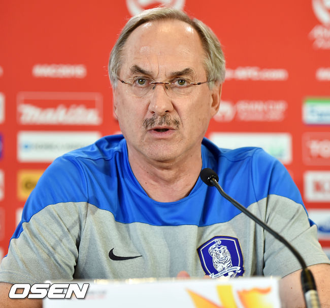 울리 슈틸리케 감독이 이끄는 한국 축구대표팀과 호주대표팀이 30일(이하 한국시간) 호주 시드니에 위치한 스타디움 오스트레일리아서 2015 AFC 아시안컵 결승전 기자회견 및 훈련을 가졌다. 한국 슈틸리케 감독이 기자회견을 갖고 있다.