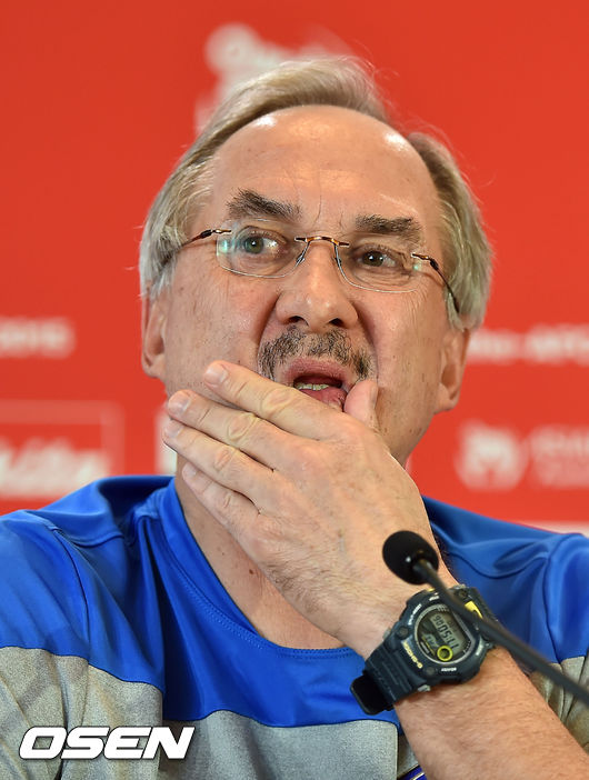울리 슈틸리케 감독이 이끄는 한국 축구대표팀과 호주대표팀이 30일(이하 한국시간) 호주 시드니에 위치한 스타디움 오스트레일리아서 2015 AFC 아시안컵 결승전 기자회견 및 훈련을 가졌다. 한국 슈틸리케 감독이 기자회견을 갖고 있다.