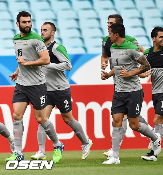 울리 슈틸리케 감독이 이끄는 한국 축구대표팀과 호주대표팀이 30일(이하 한국시간) 호주 시드니에 위치한 스타디움 오스트레일리아서 2015 AFC 아시안컵 결승전 기자회견 및 훈련을 가졌다. 호주 제디낙과 팀 케이힐이 얘기를 나누며 훈련을 하고 있다.