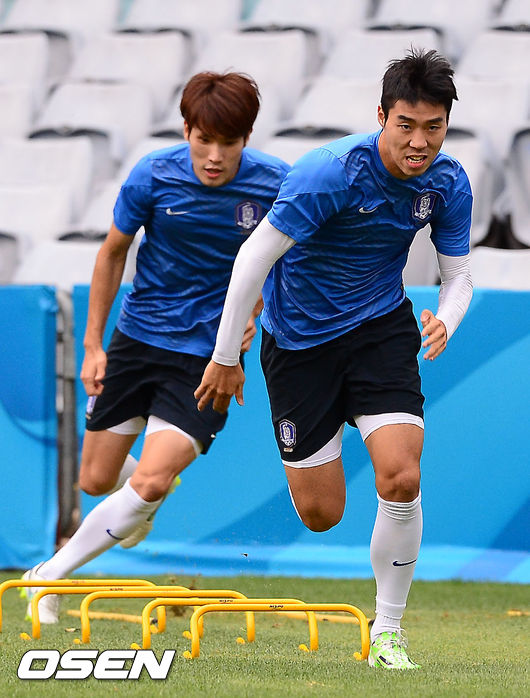 울리 슈틸리케 감독이 이끄는 한국 축구대표팀과 호주대표팀이 30일(이하 한국시간) 호주 시드니에 위치한 스타디움 오스트레일리아서 2015 AFC 아시안컵 결승전 기자회견 및 훈련을 가졌다. 한국 이정협과 한국영이 훈련을 하고 있다.