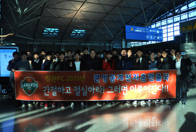 강원FC가 중국 쿤밍전지훈련에 돌입한다. 선수단은 30일 오후 6시 30분 비행기로 인천국제공항을 출발하여 내달 25일까지 약 1달동안 쿤밍에서 2015시즌 우승을 향한 구슬땀을 흘린다.