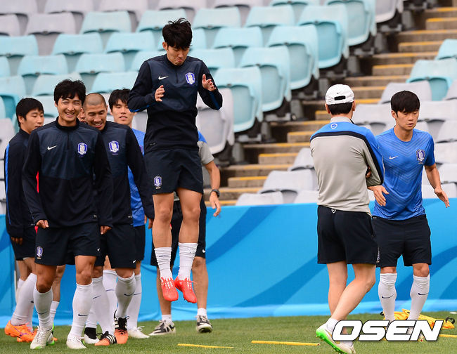 울리 슈틸리케 감독이 이끄는 한국 축구대표팀과 호주대표팀이 30일(이하 한국시간) 호주 시드니에 위치한 스타디움 오스트레일리아서 2015 AFC 아시안컵 결승전 기자회견 및 훈련을 가졌다. 한국 손흥민과 김진수가 훈련을 하고 있다.