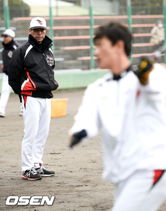 30일 kt위즈의 스프링 캠프가 차려진 일본 미야자키(宮崎)현 휴가(日向)시의 다이오타니 야구장에서 kt위즈 조범현 감독이 선수들의 타격훈련을 지켜보고 있다