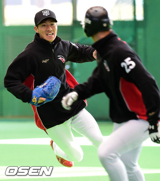 30일 kt위즈의 스프링 캠프가 차려진 일본 미야자키(宮崎)현 휴가(日向)시의 다이오타니 야구장에서 kt위즈 이창재가 수비훈련을 하고 있다