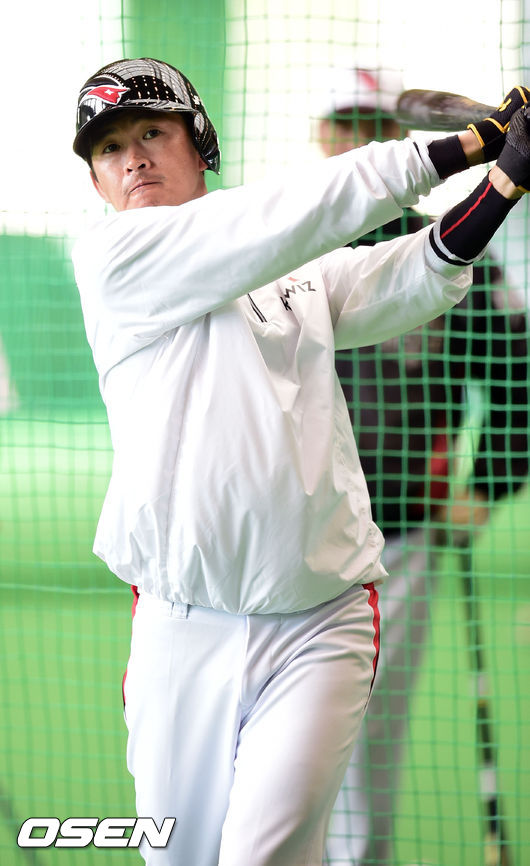 30일 kt위즈의 스프링 캠프가 차려진 일본 미야자키(宮崎)현 휴가(日向)시의 다이오타니 야구장에서 kt위즈 박기혁이 타격훈련을 하고 있다.
