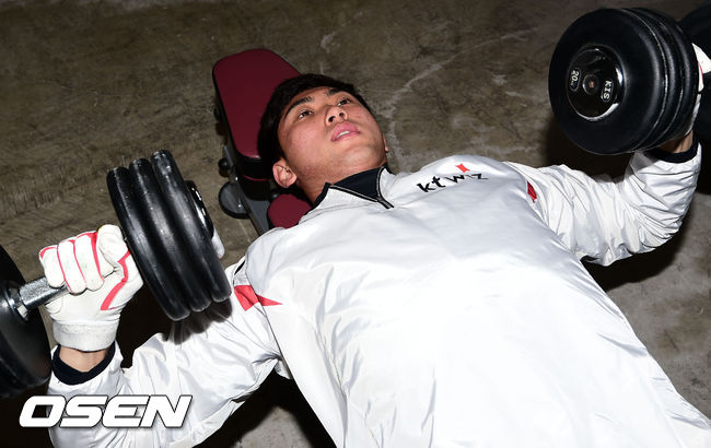 30일 kt위즈의 스프링 캠프가 차려진 일본 미야자키(宮崎)현 휴가(日向)시의 다이오타니 야구장에서 kt위즈 김민수가 근력훈련을 하고 있다.