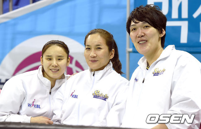 30일 오후 경기도 부천시 부천실내체육관에서 열린 'KB국민은행 2014-2015 여자프로농구' 하나외환과 신한은행의 경기에 앞서 신한은행 최윤아, 신정자, 하은주가 취재진을 향해 포즈를 취하고 있다.