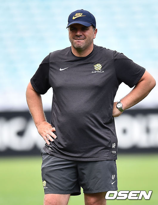 울리 슈틸리케 감독이 이끄는 한국 축구대표팀과 호주대표팀이 30일(이하 한국시간) 호주 시드니에 위치한 스타디움 오스트레일리아서 2015 AFC 아시안컵 결승전 기자회견 및 훈련을 가졌다. 안제 포스테코글루 호주감독이 훈련을 지켜보고 있다.