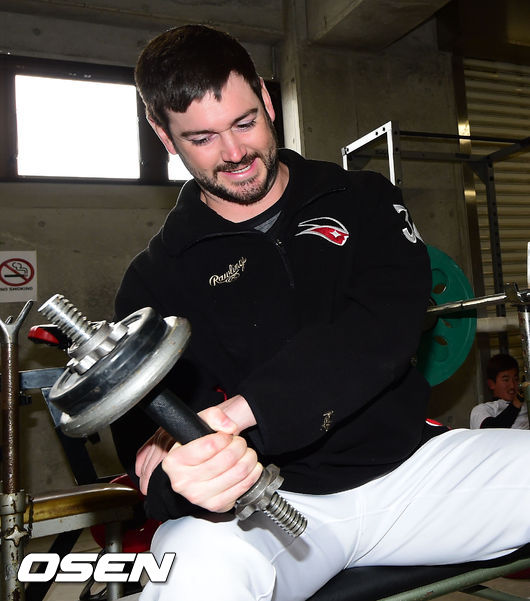 30일 kt위즈의 스프링 캠프가 차려진 일본 미야자키(宮崎)현 휴가(日向)시의 다이오타니 야구장에서 kt위즈 필 어윈이 근력훈련을 하고 있다