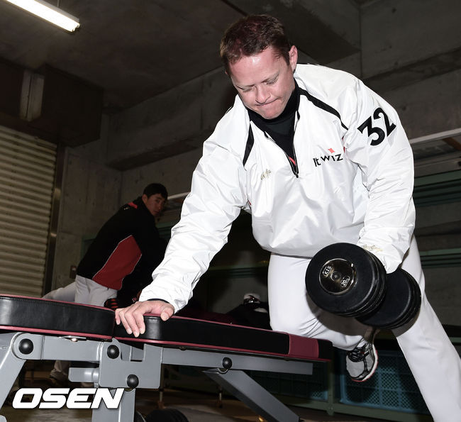 30일 kt위즈의 스프링 캠프가 차려진 일본 미야자키(宮崎)현 휴가(日向)시의 다이오타니 야구장에서 kt위즈 옥스프링이 근력훈련을 하고 있다