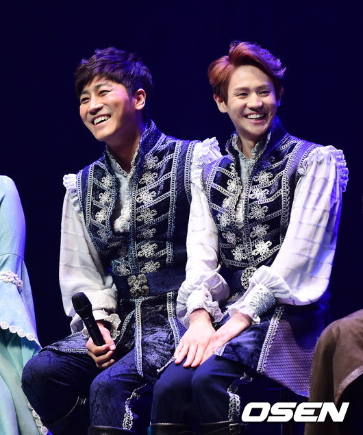 필립 왕세자 역의 박성환, 양요섭이 질문에 답을 하며 미소짓고 있다.