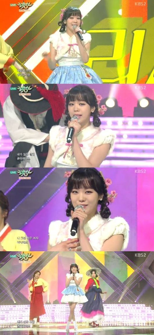 이날 리지는 귀여운 한복 차림으로 등장했다. 또 무대 내내 깜찍한 애교와 퍼포먼스, 구수한 트로트로 눈과 귀를 함께 사로잡았다.