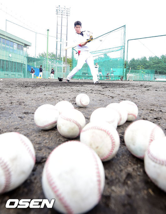30일 kt위즈의 스프링 캠프가 차려진 일본 미야자키(宮崎)현 휴가(日向)시의 다이오타니 야구장에서 kt위즈 배병옥이 타격훈련을 하고 있다