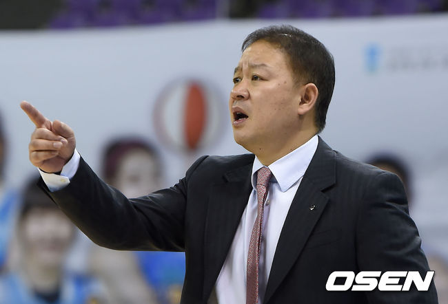 30일 오후 경기도 부천시 부천실내체육관에서 열린 'KB국민은행 2014-2015 여자프로농구' 하나외환과 신한은행의 경기, 1쿼터 신한은행 정인교 감독이 작전지시를 하고 있다.