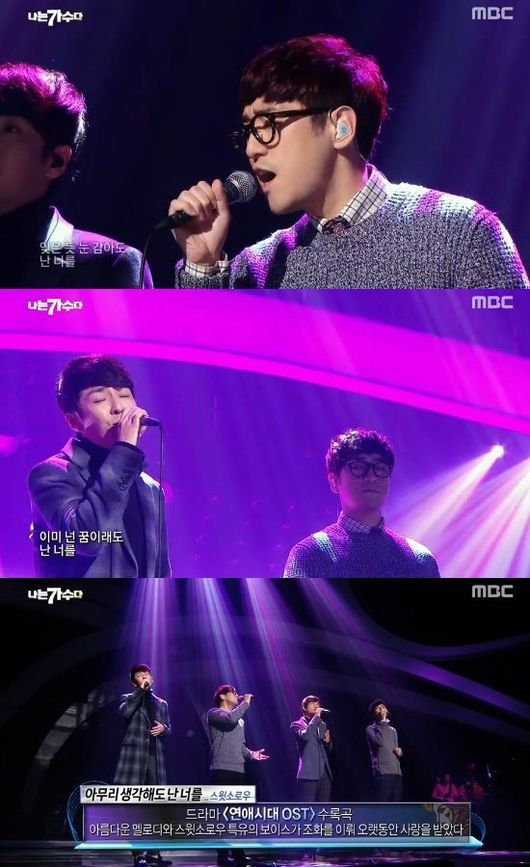 스윗소로우는 30일 오후 첫 방송된 MBC 예능프로그램 '나는 가수다3'에서 곡 '아무리 생각해도 난 너를'을 열창했다.