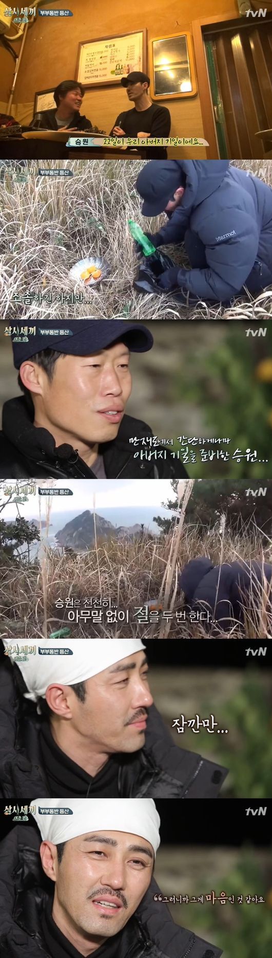 이 모습에 유해진은 뭉클하다고 말했다. 유해진은 차승원 대신 술잔을 채우며 차승원의 아버지를 함께 기렸다. 이에 차승원은 “내가 혼자 술을 따르려고 했더니 유해진이라는 친구가”라고 말하며 울컥, 잠시 말을 잇지 못했다.