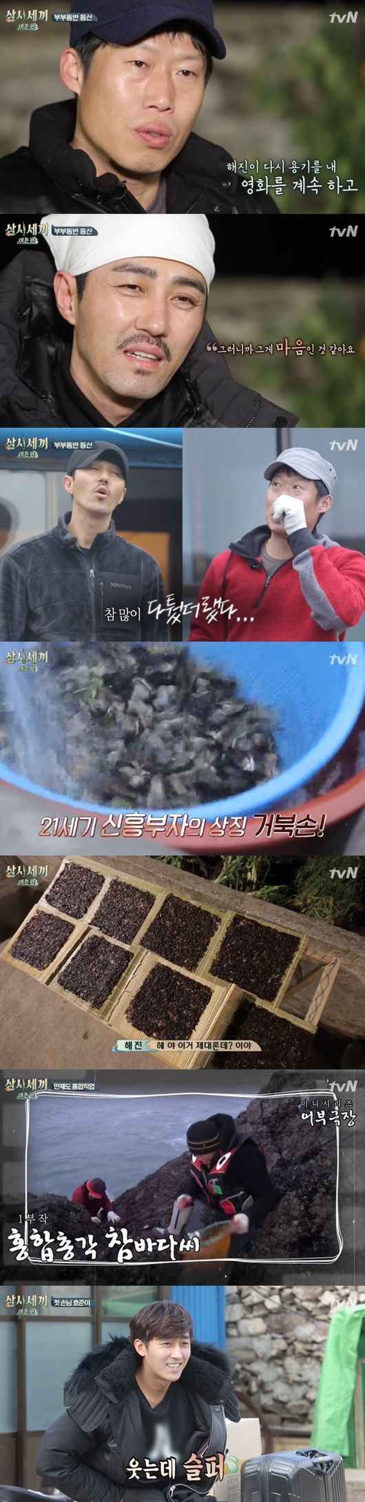 ‘삼시세끼-어촌편' 밥상이 더욱 풍성해졌다. 유해진의 우럭 낚시를 시작으로 차승원이 채취한 거북손, 김, 자연산 홍합 등이 밥상에 올라 시청자를 유혹했다.