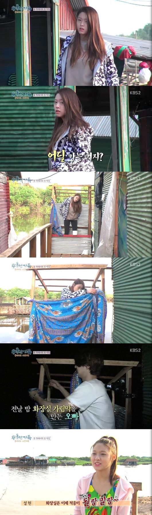 수상가옥 위에 설치된 화장실은 집 옆에 나무 판자를 붙여 만든 다소 위태로운 모양. 앞서 가족들은 가림막이 없어 당황한 바 있다.