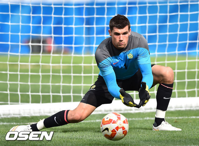 울리 슈틸리케 감독이 이끄는 한국 축구대표팀과 호주대표팀이 30일(이하 한국시간) 호주 시드니에 위치한 스타디움 오스트레일리아서 2015 AFC 아시안컵 결승전 기자회견 및 훈련을 가졌다. 호주 대표팀의 매트 라이언이 수비훈련을 하고 있다.