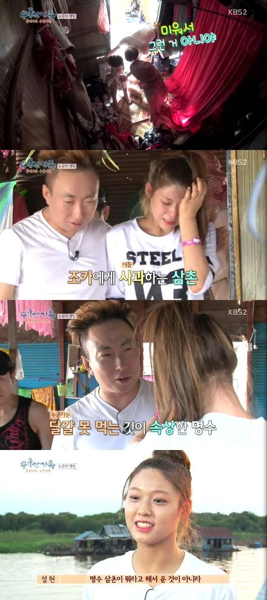 이후 설현은 "다들 잘못 생각하시는데, 명수 삼촌이 뭐라 해서 그런게 아니라, 내가 달걀을 깨서 당황해서 그래서, 자책하는 마음에서 운 거다. 삼촌 떄문에 운 게 아니다"라고 말했다.