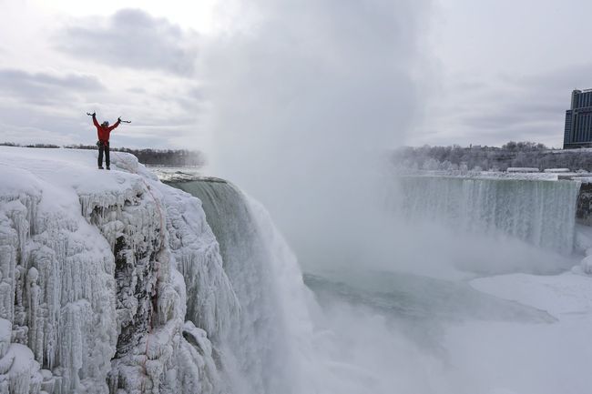 주인공은 미국과 캐나다 시민권자인 윌 개드. 일찍부터 극한상황에서 빙벽등반을 성공시킨 세계적인 아이스클라이머이다. 개드는 30일(이하 한국시간) 자일 파트너 사라 후에니켄(캐나다)과 함께 얼어붙은 나이애가라 폭포를 오르는 데 성공했다.