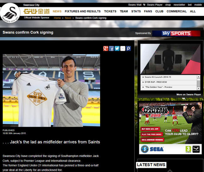 스완지 시티 홈페이지 캡처.
