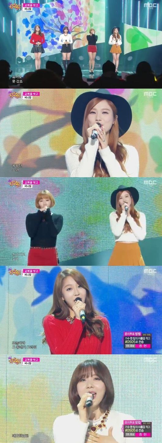 써니힐은 31일 오후 방송된 MBC '쇼 음악중심'에서 신곡 '교복을 벗고'를 선보였다.