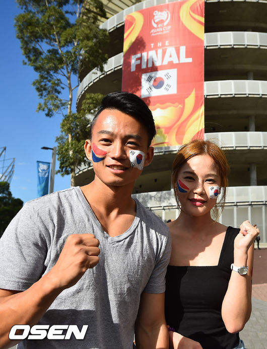 울리 슈틸리케 감독이 이끄는 한국 축구대표팀과 호주대표팀이 31일(이하 한국시간) 호주 시드니에 위치한 스타디움 오스트레일리아서 2015 AFC 아시안컵 결승전을 가질 예정인 가운데 한국 팬들과 호주 팬들이 경기장 밖에서 열띤 응원을 펼치고 있다.