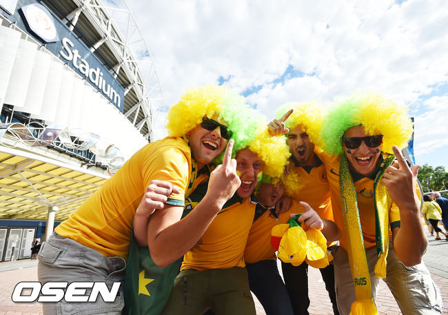 울리 슈틸리케 감독이 이끄는 한국 축구대표팀과 호주대표팀이 31일(이하 한국시간) 호주 시드니에 위치한 스타디움 오스트레일리아서 2015 AFC 아시안컵 결승전을 가질 예정인 가운데 한국 팬들과 호주 팬들이 경기장 밖에서 열띤 응원을 펼치고 있다.