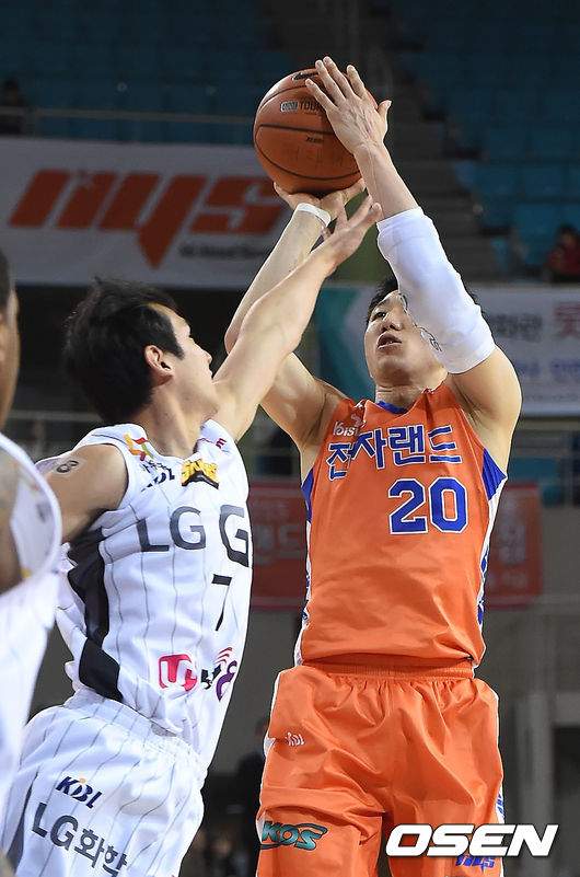 2쿼터 전자랜드 정영삼이 슛을 하고 있다.