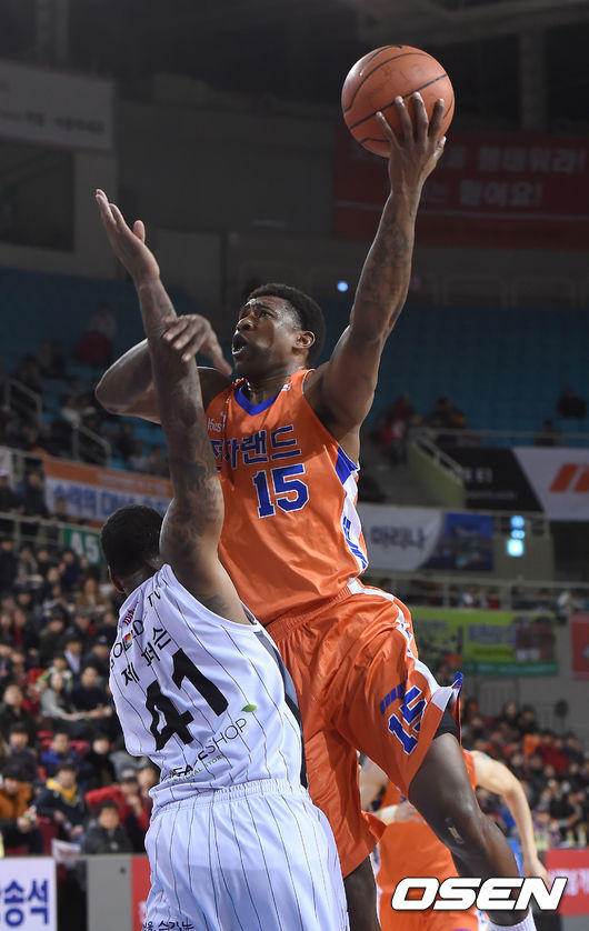 2쿼터 전자랜드 포웰이 레이업을 하고 있다.