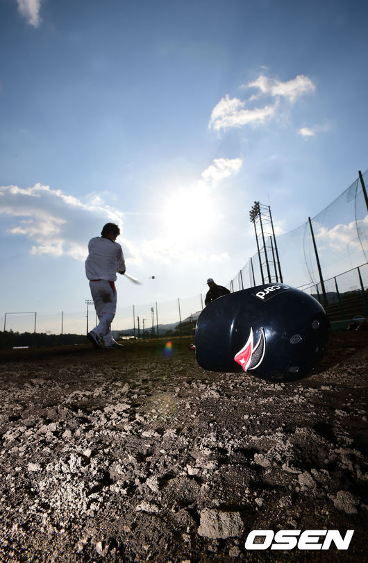 31일 kt위즈의 스프링 캠프가 차려진 일본 미야자키(宮崎)현 휴가(日向)시의 오쿠라가하마 구장에서 kt위즈 주장 신명철이 타격훈련을 하고 있다.