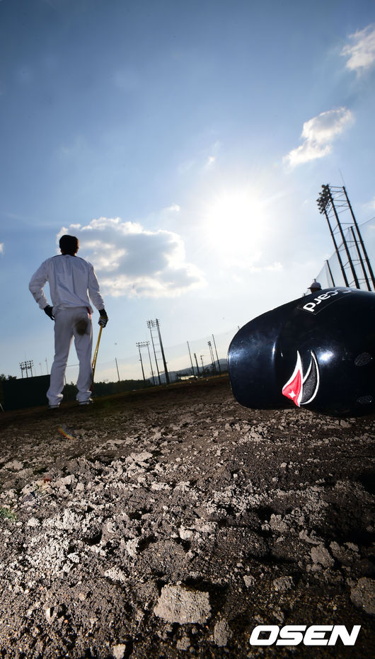 31일 kt위즈의 스프링 캠프가 차려진 일본 미야자키(宮崎)현 휴가(日向)시의 오쿠라가하마 구장에서 kt위즈 주장 신명철이 타격훈련 중 휴식을 취하고 있다.