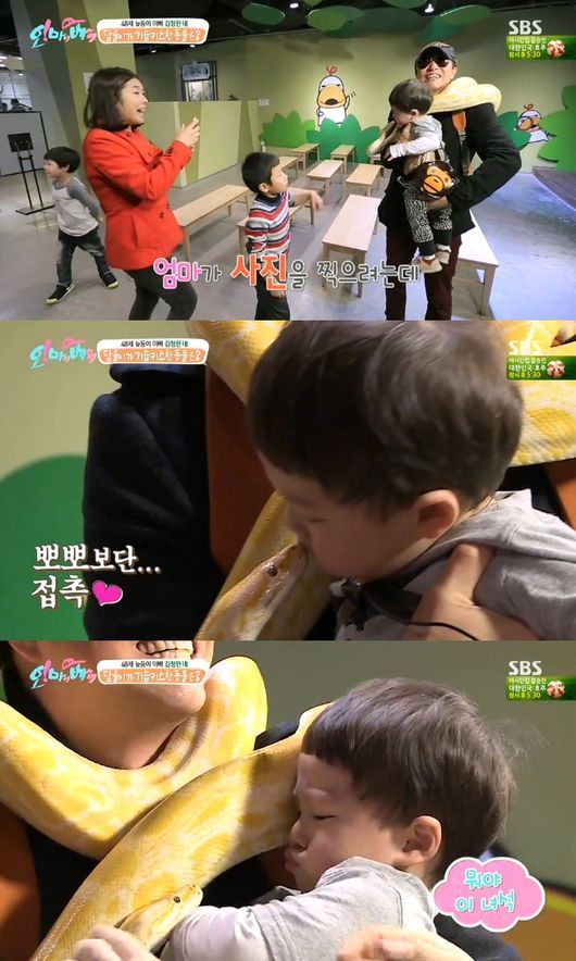 '오 마이 베이비'의 김정민 아들 담율이 뱀에게 기습 뽀뽀를 당했다.