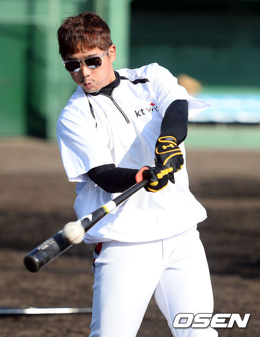 31일 kt위즈의 스프링 캠프가 차려진 일본 미야자키(宮崎)현 휴가(日向)시의 오쿠라가하마 구장에서 kt위즈 박경수가 타격훈련을 하고 있다.