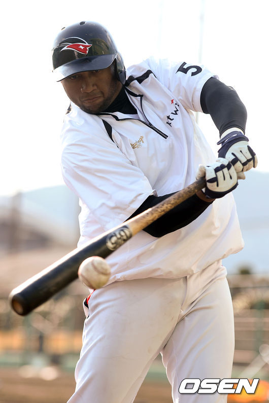 31일 kt위즈의 스프링 캠프가 차려진 일본 미야자키(宮崎)현 휴가(日向)시의 오쿠라가하마 구장에서 kt위즈 마르테가 타격훈련을 하고 있다.