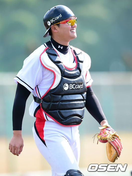 31일 kt위즈의 스프링 캠프가 차려진 일본 미야자키(宮崎)현 휴가(日向)시의 오쿠라가하마 구장에서 kt위즈 김동명이 미소 짓고 있다.