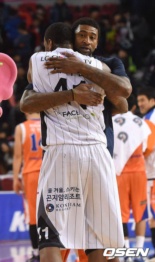 경기 종료 후 전자랜드 포웰과 LG 제퍼슨이 포옹을 나누고 있다. /youngrae@osen.co.kr