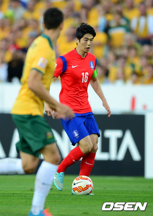 전반 한국 기성용이 패스할 곳을 찾고 있다.