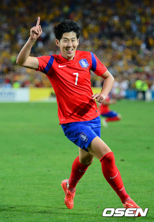 후반 한국 손흥민이 극적인 동점골을 넣고 기뻐하고 있다.