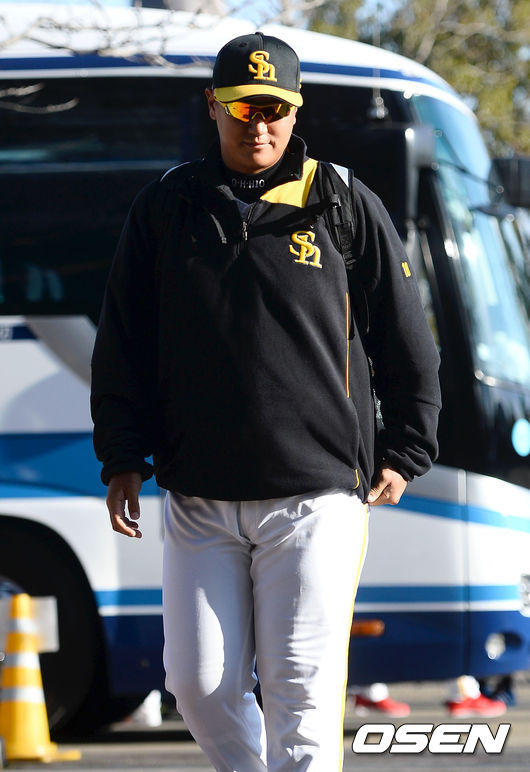 1일 오후 일본 미야자키(宮崎) 이키메노모리 운동공원 내 아이비스타디움에서 진행된 일본 프로야구 소프트뱅크 스프링캠프, 이대호가 경기장에 들어서고 있다.