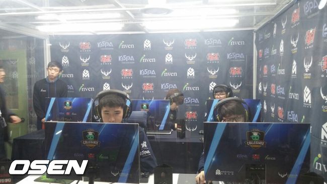 강원대는 1일 서울 인벤 강남스튜디오에서 열린 2015 리그오브레전드(이하 LoL) 대학생 배틀 8강 3경기 세종대와의 경기에서 2-0으로 세종대를 꺾고 4강전에 진출했다. 1세트부터 세종대를 압도한 강원대는 2세트에서는 초반 주도권을 내줬지만 끈질기게 상대를 물고 늘어진 끝에 승리를 확정지었다.