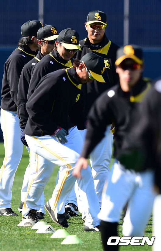 1일 오후 일본 미야자키(宮崎) 이키메노모리 운동공원 내 아이비스타디움에서 진행된 일본 프로야구 소프트뱅크 스프링캠프, 이대호가 워밍업 하고 있다.