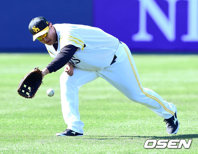 1일 오후 일본 미야자키(宮崎) 이키메노모리 운동공원 내 아이비스타디움에서 진행된 일본 프로야구 소프트뱅크 스프링캠프, 이대호가 수비훈련을 하고 있다.