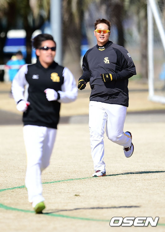 1일 오후 일본 미야자키(宮崎) 이키메노모리 운동공원 내 아이비스타디움에서 진행된 일본 프로야구 소프트뱅크 스프링캠프, 이대호가 타격-수비 훈련을 마친뒤 러닝훈련을 하고 있다.