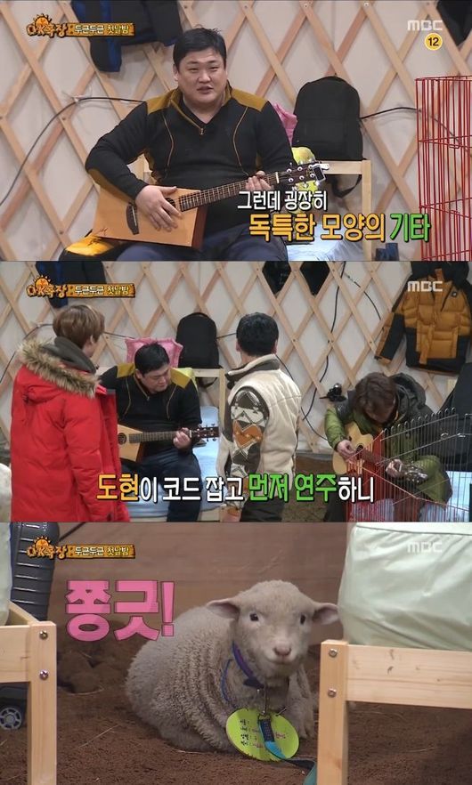 1일 오후 4시 50분 방송된 MBC '일밤-애니멀즈'에서는 OK목장 멤버들이 저녁상을 차리며 기타를 치는 장면이 담겼다.