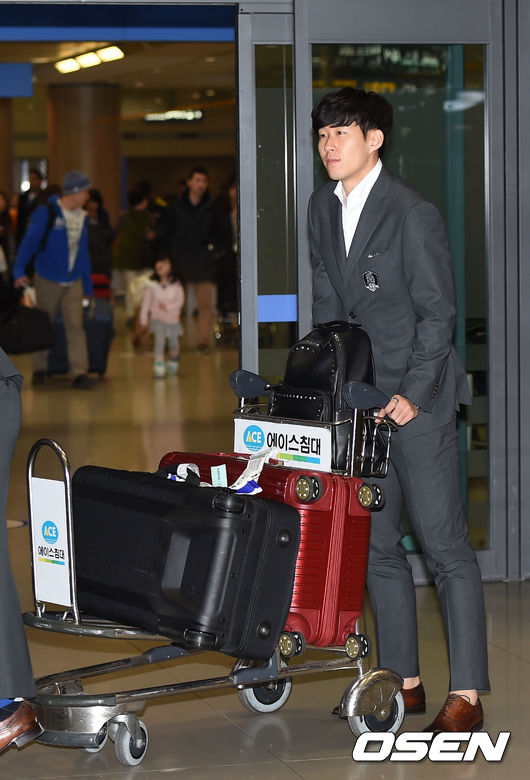 손흥민이 입국장을 나가고 있다.