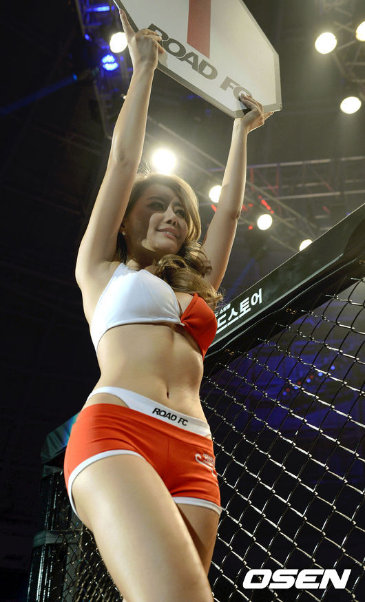 1일 오후 서울 장충체육관에서 열린 '로드FC 021& 영건즈 20'에서 로드걸 세레나가 라운드 시작을 알리고 있다.
